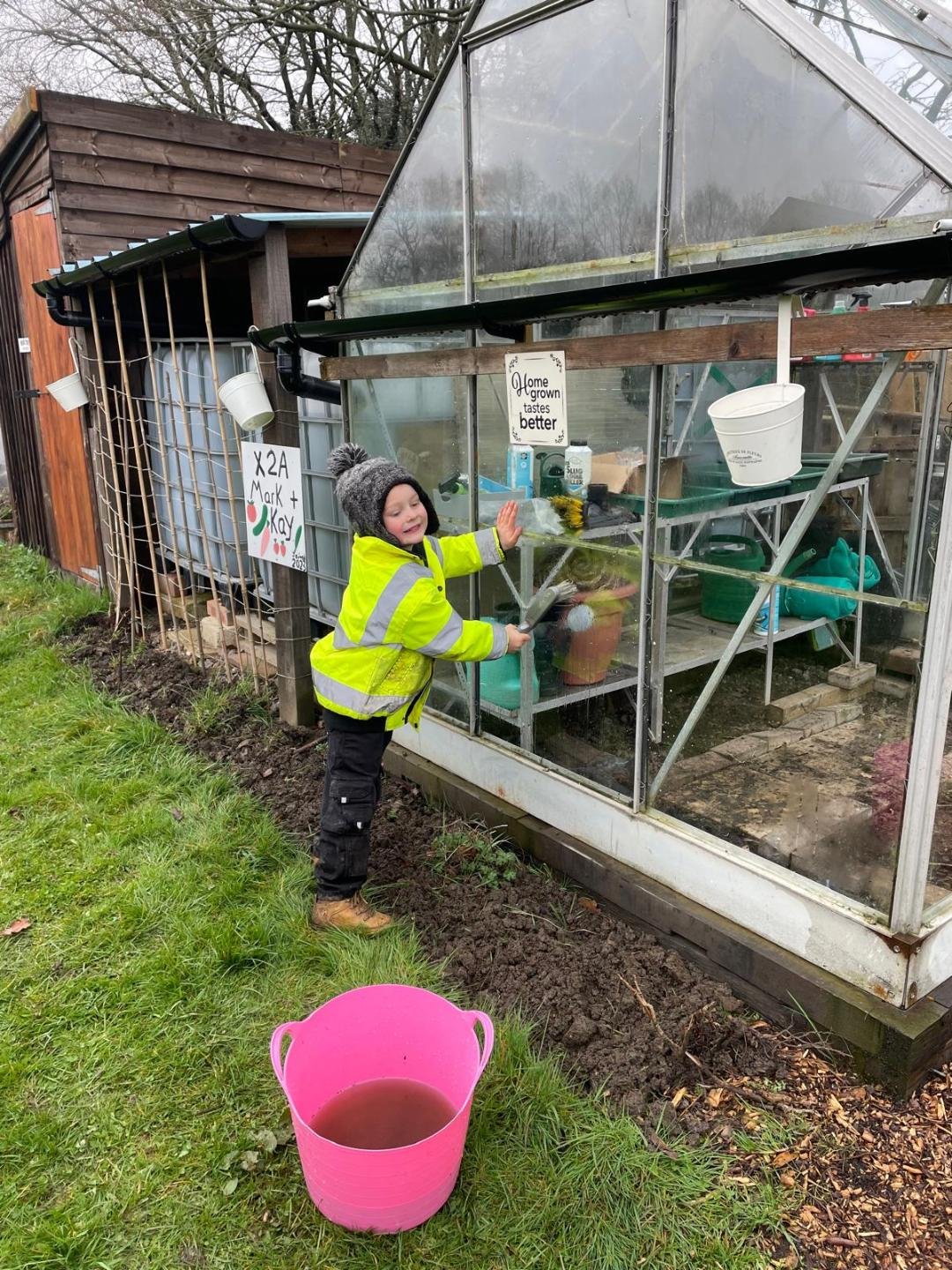 Helping with the woodchip