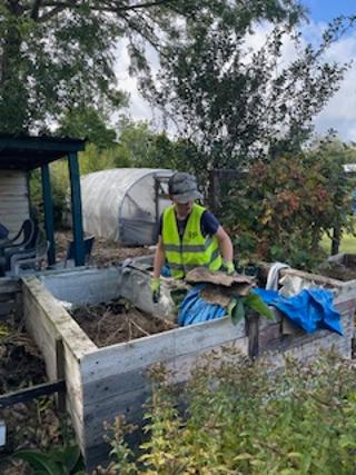 Ronnie helping on the community plot